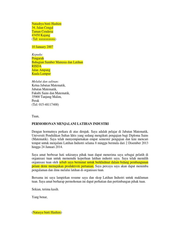 Surat Permohonan Untuk Latihan Industri : Surat Permohonan Untuk Latihan Industri Download Contoh Surat Permohonan Keringanan Tarif Tiket Pesawat Ada Banyak Surat Permohonan Yang Beredar Di Dunia Ini Paydayloansnofaxinginstantapprovelxyz. Laporkan kejadian geobencana tanah runtuh. Dec 24, 2021 · permohonan program latihan industri. Permohonan perakuan dan sokongan punca air mineral semula jadi/ air minuman berbungkus/ penyediaan ais (tempatan)